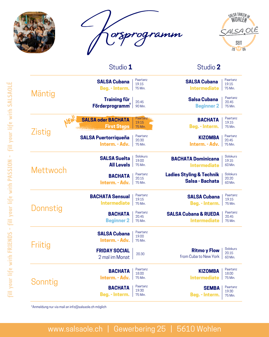 | Kursname | Ladies Styling & Technik Interm. | Salsa - Bachata |